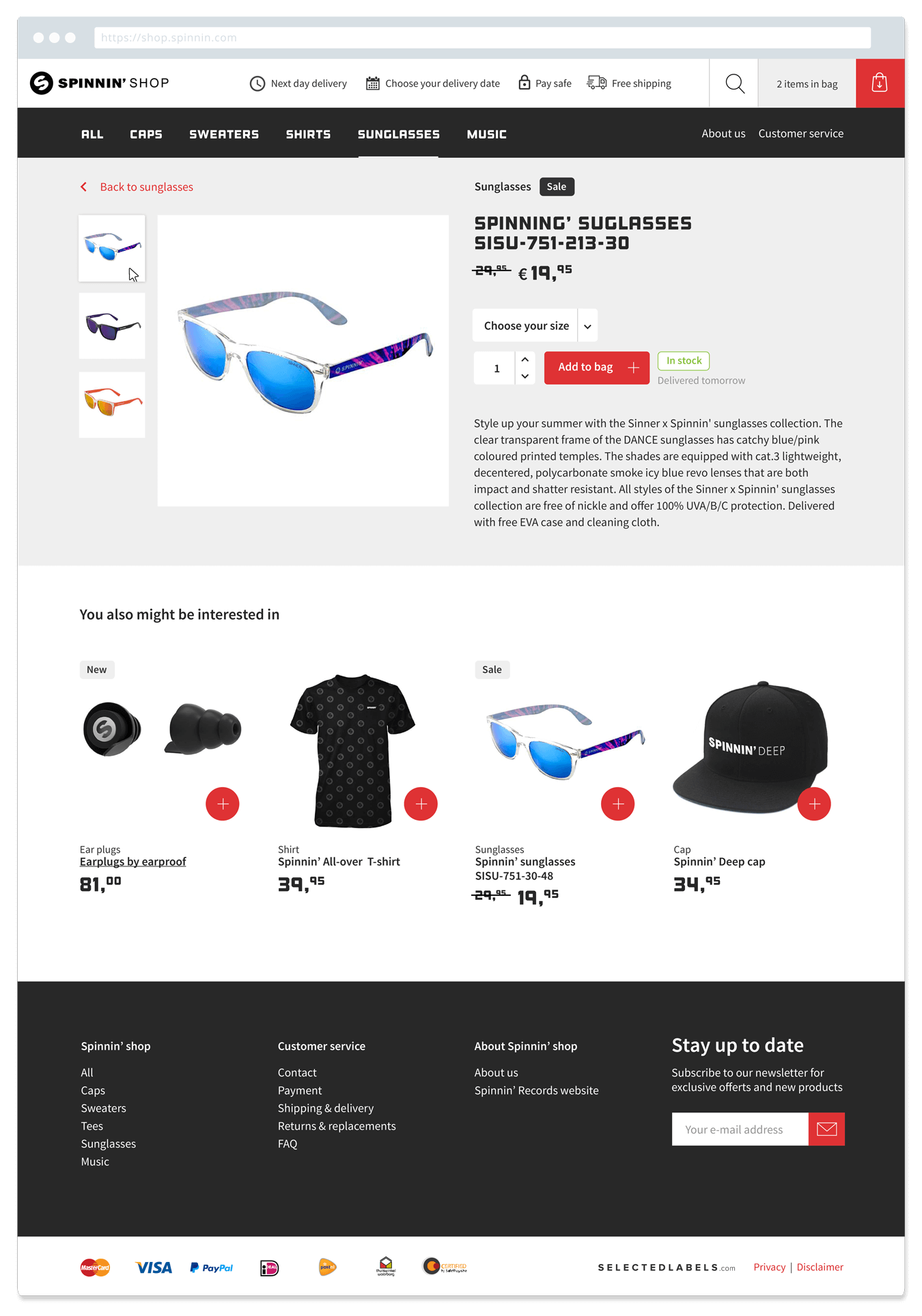 Wij ontwierpen een basis-shop voor Selected Labels, zodat iedere DJ, elk festival en ieder platenlabel een eigen merchandise shop kan hebben.