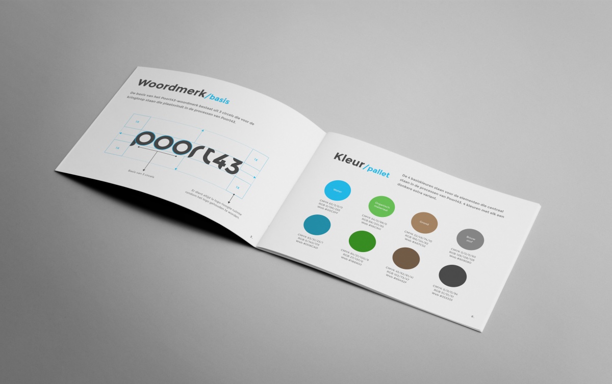 Na diverse oriënterende gesprekken met de klant zijn we met een creatief team binnen Power-S gestart met een brainstorm omtrent een nieuwe naam. Dit werd Poort 43. Deze naam koppelde onze art director direct aan een nieuwe huisstijl. De klant had inmiddels een eigen projectteam geformeerd waarmee we tijdens dit project (circa 4 maanden) iedere 2-3 weken rond de tafel gingen voor een update, om te sparren, om informatie te halen. Want herpositioneren doe je samen. Het ‘klein comité’ bleef zo continu op de hoogte en wij van de ontwikkelingen op het terrein.