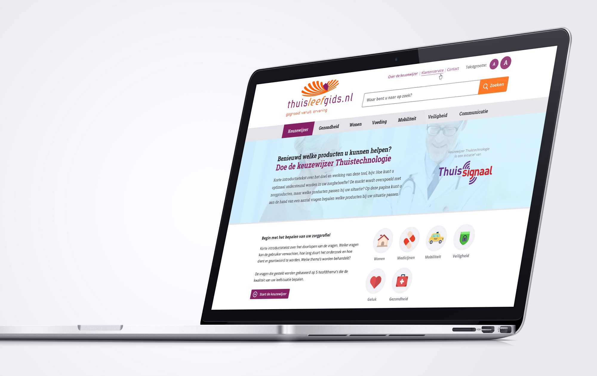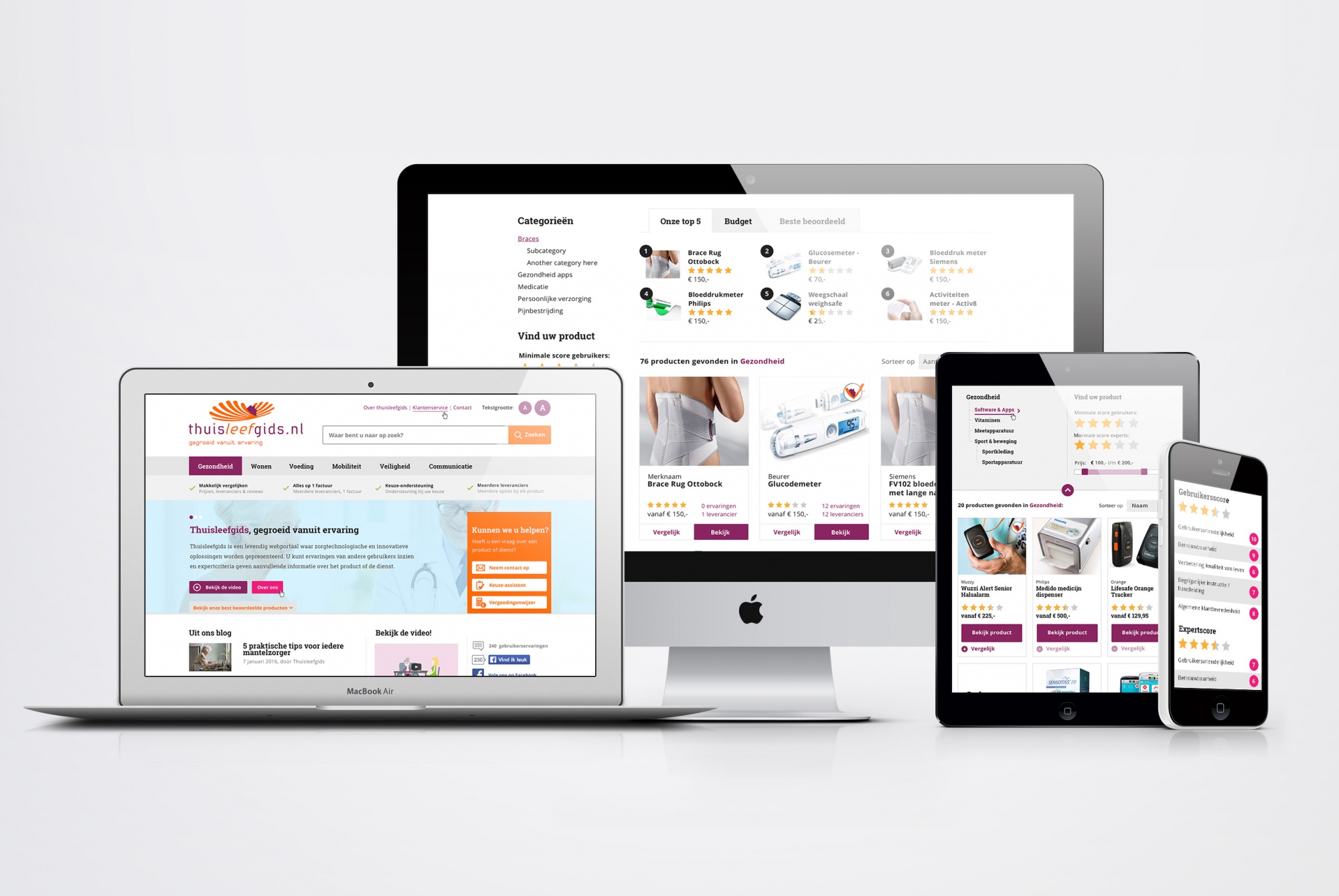 Het resultaat Thuisleefgids.nl is een online platform waar bezoekers eenvoudig producten kunnen vergelijken, bestellen en ervaringen uitwisselen. De website beschikt over een keuzewijzer, waarbij de gebruiker op toegankelijke wijze wordt geholpen bij de keuze voor het juiste product. Daarnaast biedt het platform de mogelijkheid tot het maken van een white label variant, waarbij een zorgaanbieder geheel in de eigen look-and-feel gebruik kan maken van alle faciliteiten op de Thuisleefgids website.